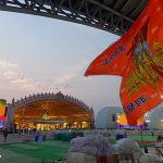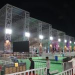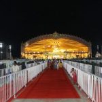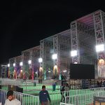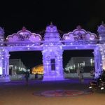 38 illuminated deity cutouts and signboards guide devotees through the venue and seating areas.