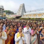 The Swarnaratham Seva of Śrī Bhū‑Sameta Śrī Malayappa Swamy was captured in a series of striking images that highlight the grandeur of the golden chariot procession, the ornate decorations, and the devotional fervour of thousands of devotees gathered along the route. These published photos showcase the deity’s serene presence on the ratha, the consorts Sridevi and Bhudevi, and the moment devotees offer camphor harati, creating a vivid visual record of this auspicious temple event.