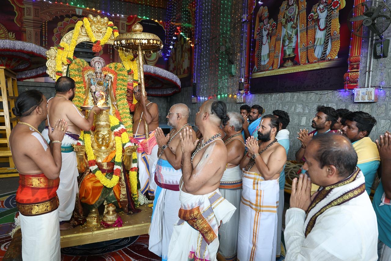 • Pumala‑Marpu style exchange of garlands between Sri Malayappa‑wedding‑form and the bride‑figures.