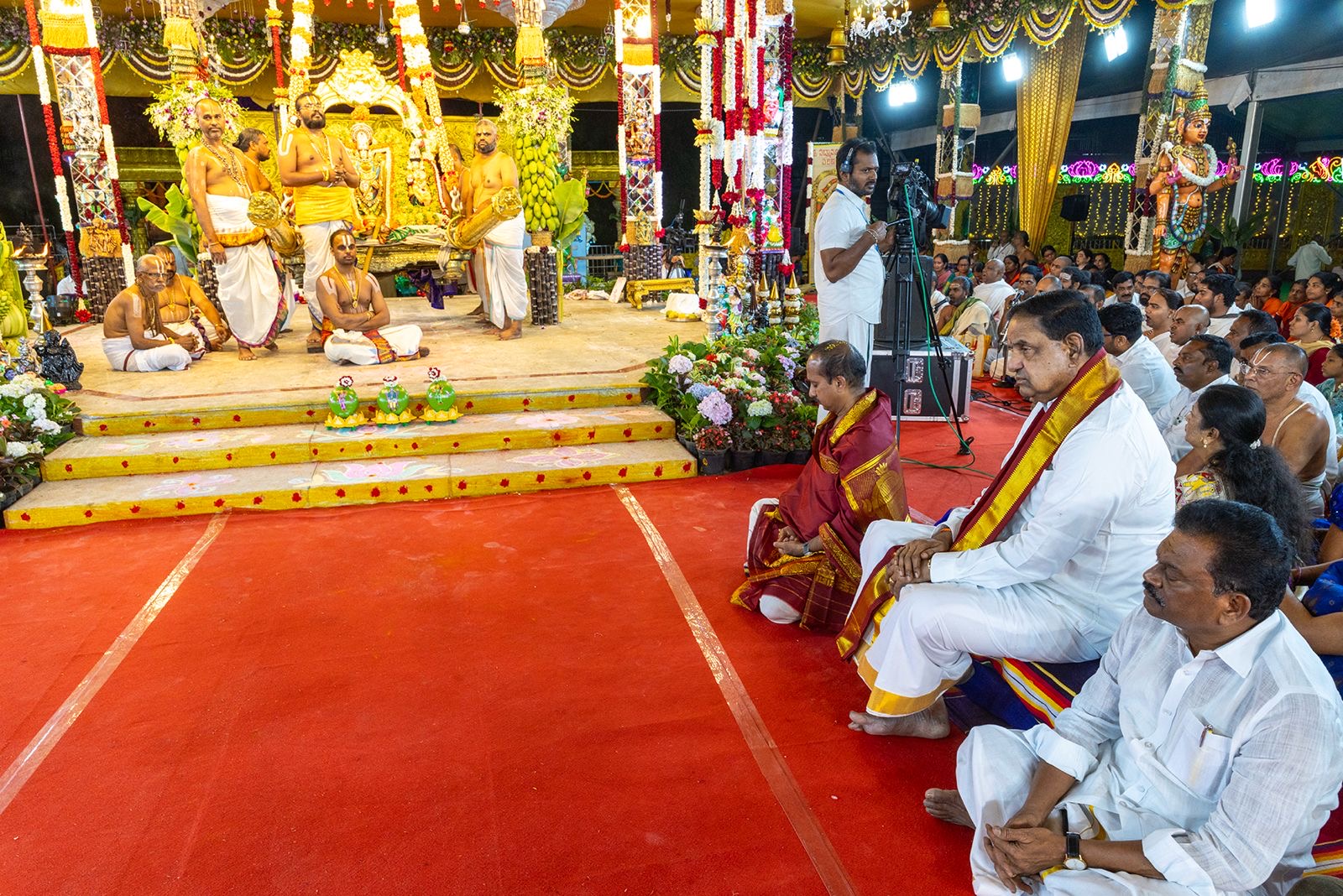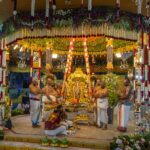 • After these rites, the deities were placed together on the wedding‑platform, and the Koluvu‑sequence marked their formal‑union‑state and shared‑dharma‑path, a key‑visual‑moment for devotees witnessing the swing‑seva.