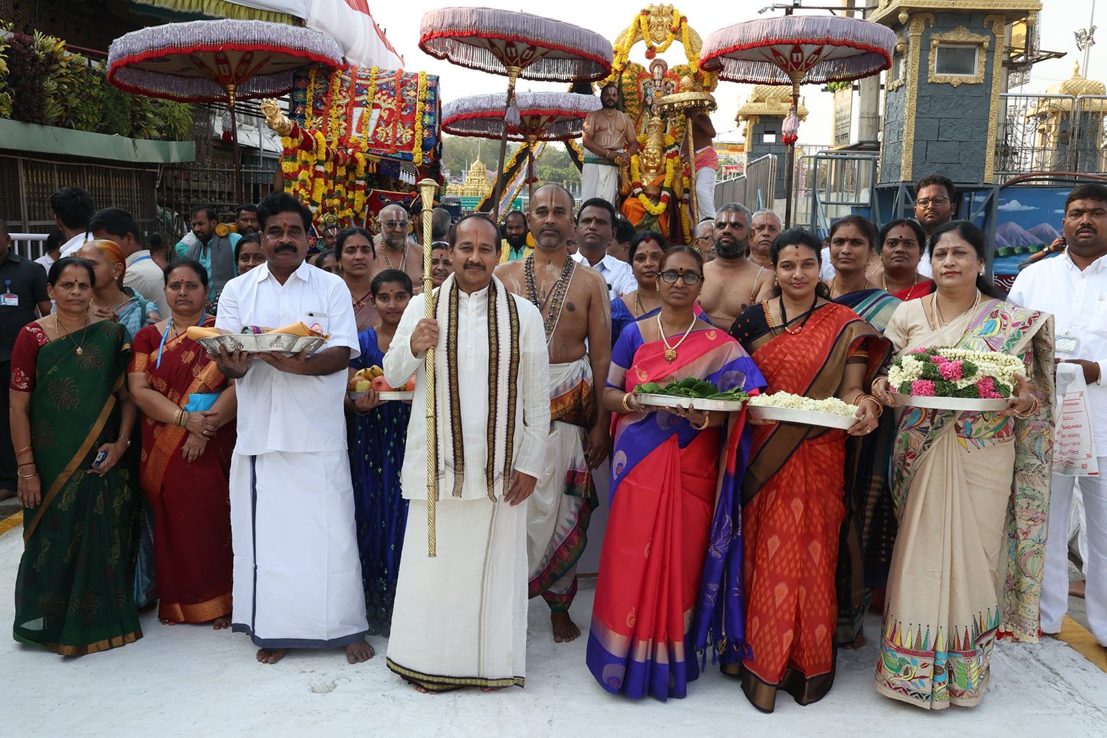 • TTD Chairman Sri B. R. Naidu presided over the closing‑day‑functions along with EO Muddada Ravichandra, Board Member Bhanu Prakash Reddy, Dy EO Lokanatham, Deputy‑EOs, JEO (Health & Education) Dr. Sharath, and other officials. Their presence reinforced the administrative‑and‑temple‑significance of the festival‑closure.