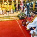 Once the wedding‑rituals concluded, Vedic‑priests performed Chaturveda Parayanam, chanting the Rig, Yajur, Sama and Atharvana Vedas in a continuous‑recitation‑session. This Vedic‑sound‑sacred‑layer is traditionally seen as invoking cosmic‑blessings and purifying the venue, elevating the spiritual‑atmosphere of the Parinayotsavam‑mandap to a high‑divine‑plane.